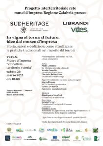 L’appuntamento è alle 10:00 nella Tenuta Rosaneti (in agro del Comune di Rocca di Neto) nei locali del Museo Vi.te.s. – “Viticoltura, territorio e storia” che fa parte della Rete Musei d’Impresa della Calabria “SudHeritage”.